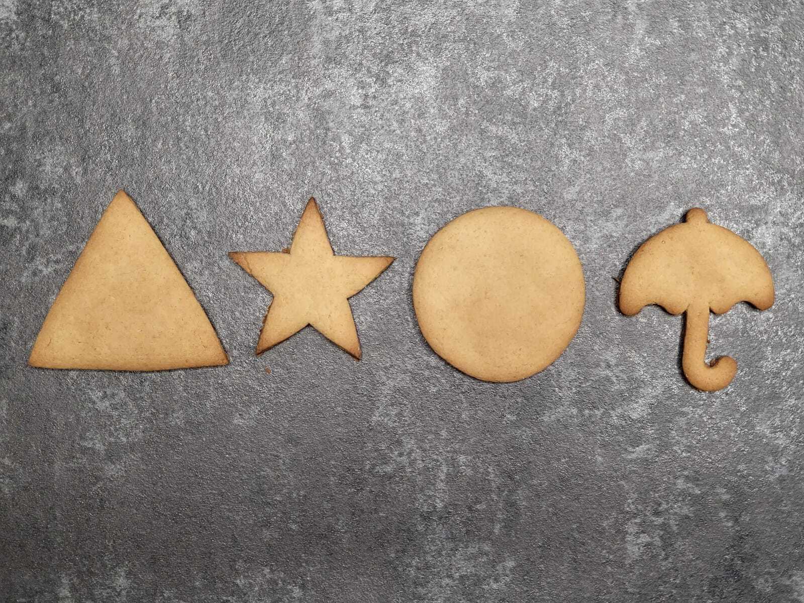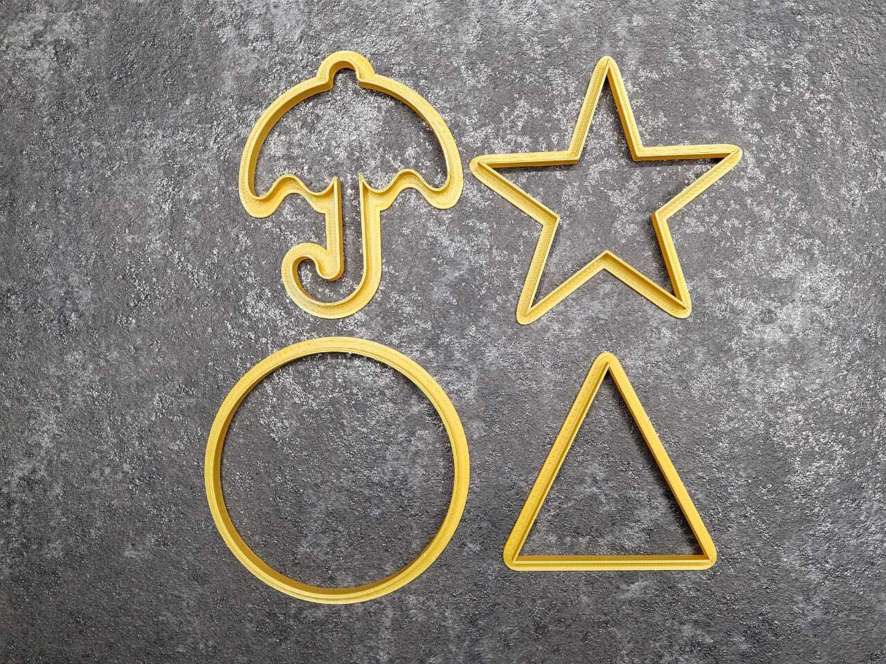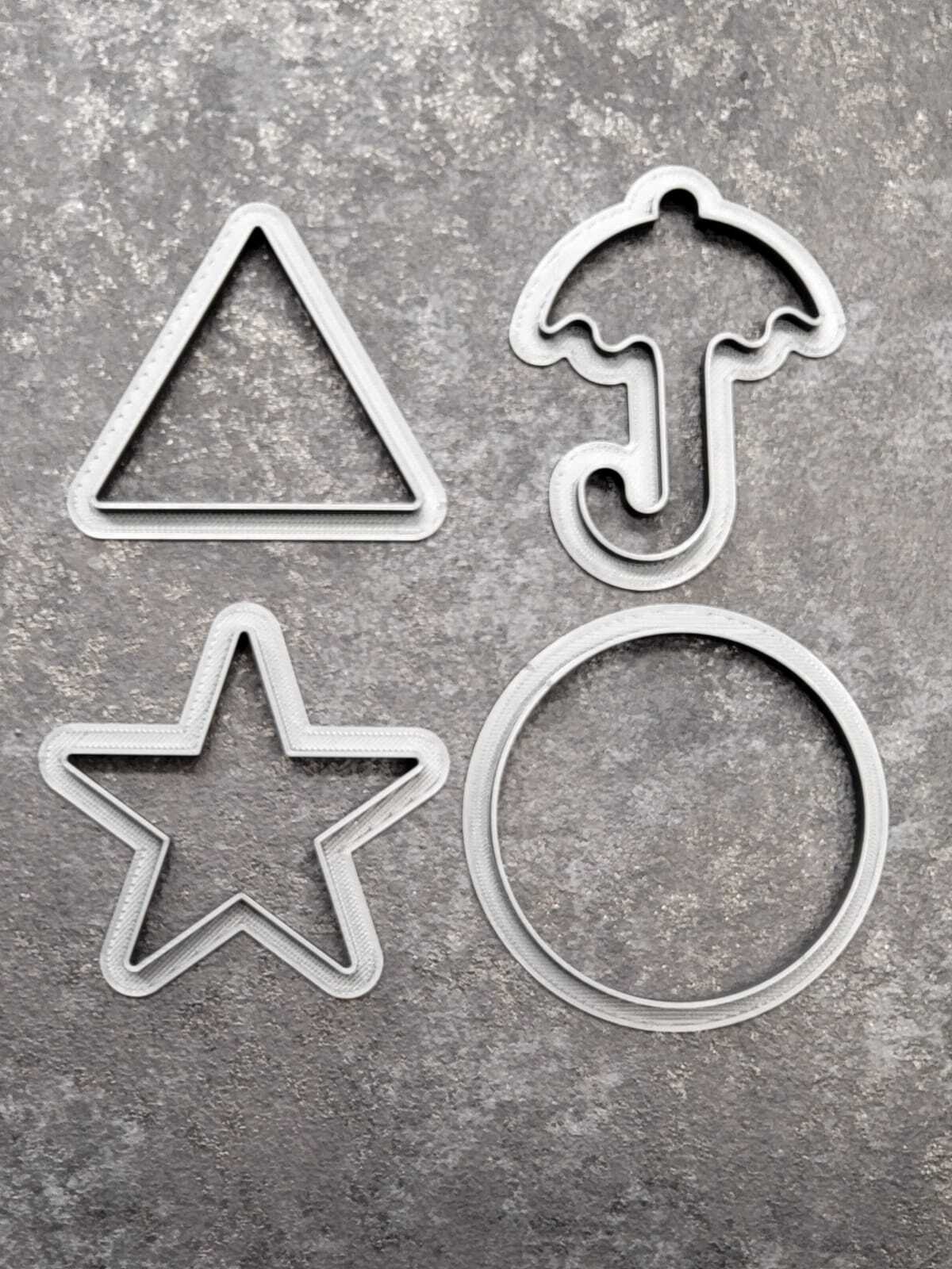 Комплект состоит из 4 (четырех) форм: круг, треугольник, звезда и зонт.